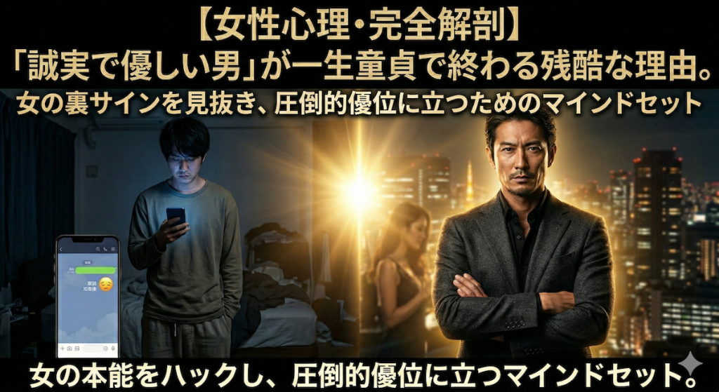【女性心理の完全解剖】「誠実で優しい男」が一生童貞で終わる残酷な理由。女の裏サインを見抜き、圧倒的優位に立つためのマインドセット