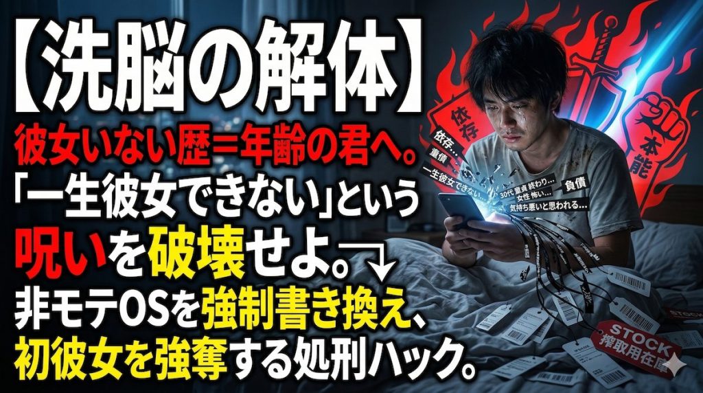 周りの男たちが当たり前のように経験している「恋愛」や「特別な夜」が、自分には一生手に入らない別世界のものに思える。女性を神聖な生き物だと崇め、自分自身を「オスとしての欠陥品」「遺伝子の敗北者」だと呪いながら、毎晩心をすり減らしているのは痛いほど分かります。俺もかつては、女性とまともに話すことすらできず、好意を向けられても逃げ出し、一人部屋で後悔に殺されそうになっていたからです。